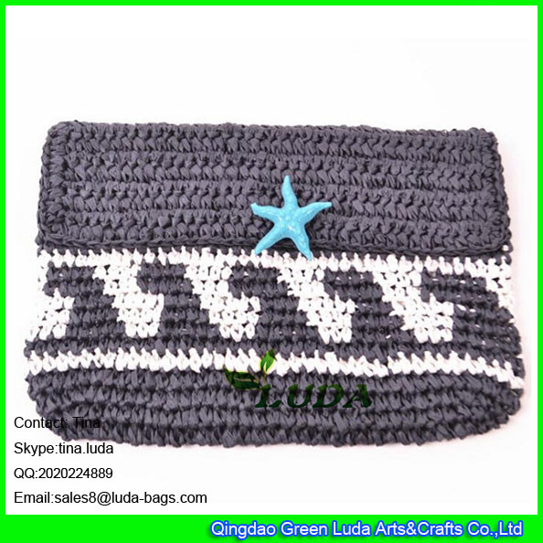 LUDA fashion 2016 handicraft handbag paper straw crochet clutch bag
